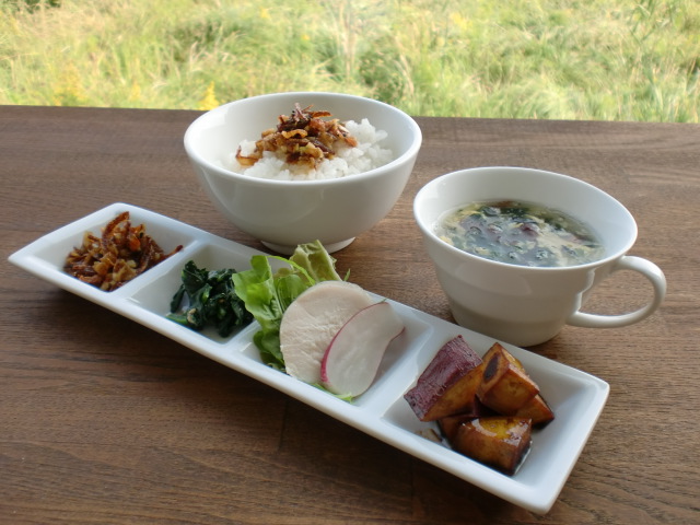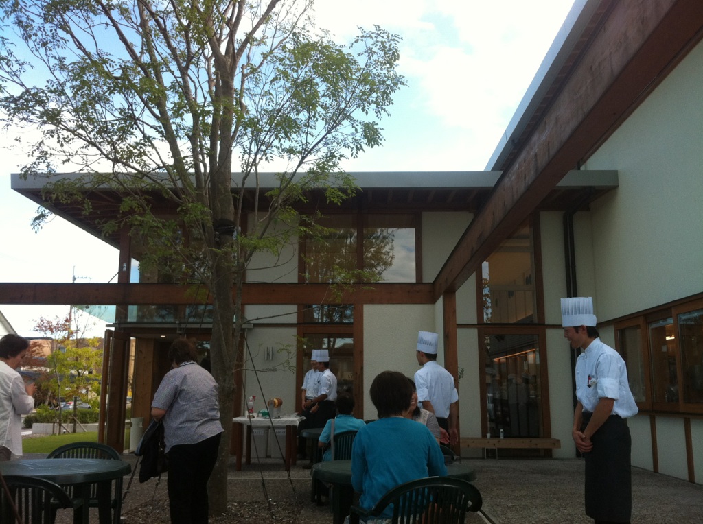 みんなが戻る頃にはなんとかできあがり、アツアツのお料理を並べてアウトドアパーティ。