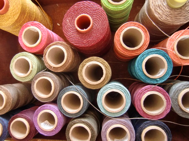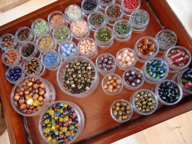 見てください、このカラフルな石や麻紐。テンションあがります~。