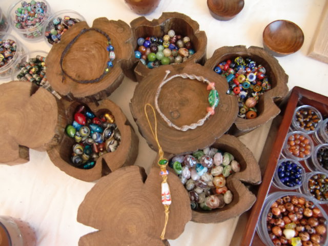 朝10時、講師の亜美屋さんがタイやインドネシアで買い付けてきた