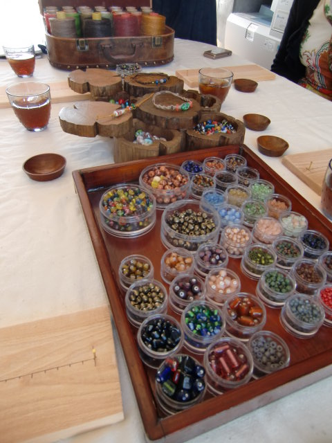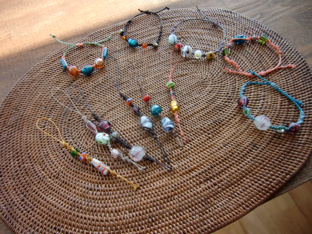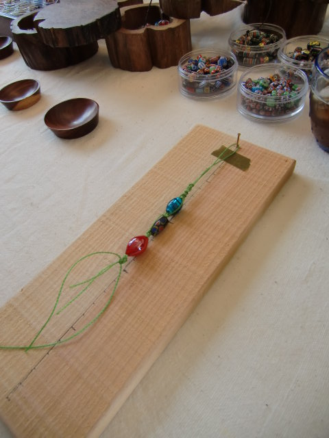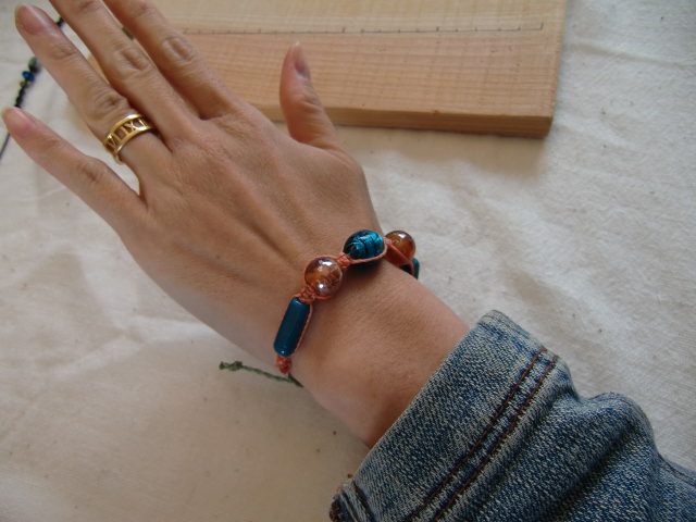 次にブレスレットを作ります。また石や紐を選んで作り始めるのですが、