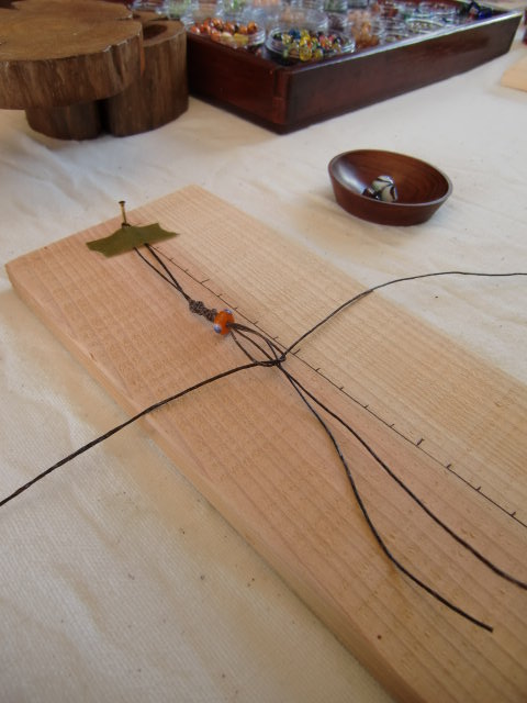 石と麻紐を選ぶと次は亜美屋さんから編み方を教わります。