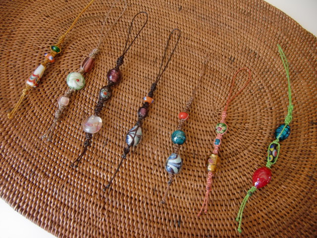 まずはストラップを作るために好きな石や紐の色を選びます。