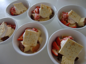 今日のスイーツはチーズケーキとマシュマロのカナッペとクッキー。
