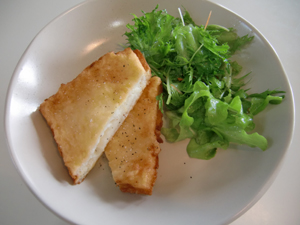 モッツアレラを使った揚げパンサンドイッチにサッパリとサラダを添えて。
